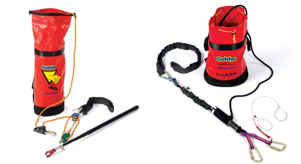 • Gotcha Rescue Kit offers a unique solution to the problems faced by those who work at heights while using personal fall protection equipment • Designed for workers who use more common fall protection equipment • Works effectively with either conscious or unconscious victims • Allows a single rescuer to carry out the rescue from a point of safety • Provides the option of either lowering the fallen worker to the next lowest level, or raising them back up to the nearest point of safety • Suitable for the rescue of workers using either lanyards or self-retracting lifelines • Gotcha Shark Kit is ideal for those who consistently work from towers or masts • Suitable to perform rescues of workers using lanyards, vertical arrest systems, and web retractable lifelines • Functions by first attaching a descent kit to the full-body harness of the victim, then cutting their primary attachment with a unique, bladeless cutter. The rescuer then descends down to the victim, collects them, and assists them in descending to safety • No assembly is required by the user • Kit is rated for maximum loads of up to 660 pounds • To perform a rescue, the rescuer must have specific rescue training Scroll down for full product description
