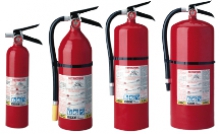 Respond to A,B and C fires quickly and effectively with these high quality fire extinguishers. Hand portable and provides protection from all fire types in residences, factories, farms, offices and vehicles. Dry chemical contains carefully ground crystals of mono-ammonium phosphate combined with flow promoters and anti-caking chemicals. Each particle is silicone coated to provide moisture repellency with minimum friction. For use on Class A (wood, paper, cloth, rubber, many plastics and ordinary combustibles) and Class B (flammable liquids-gasoline, butane, solvents, fat, and paint). Can also be used on Class C fires (energized electrical fires) as it is non-conductive. Available in a variety of sizes from 2-1/2 to 20 lbs • All corrosion resistant, epoxy coated seamless cylinders • Easy to operate • Pictographic operating instructions • Easy to read pressure gauge • Stainless steel hose and bracket bands • 12 year interval between hydrotests • Functions even at high or low temperature extremes Scroll down for full product description