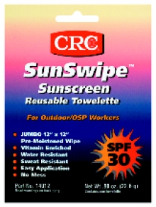 "Jumbo 12"" x 12"" wipe contains enough SPF 30 sunscreen for repeated use throughout the day. The handy, no mess re-sealable package fits in your pocket, tool belt or toolbox.